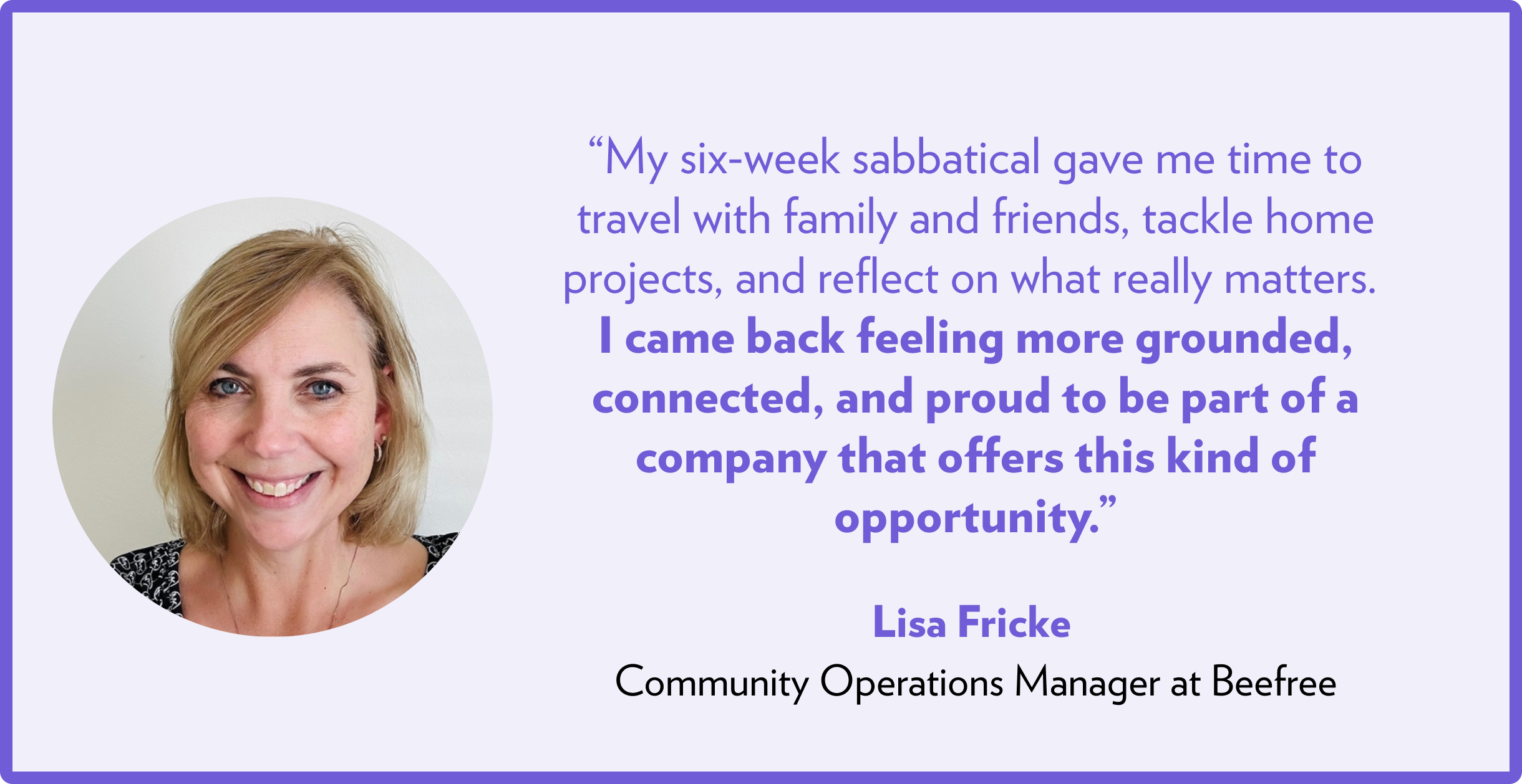 We ask each person going on sabbatical or extended leave to create a transition plan. They work with their manager to redistribute work, clarify responsibilities, and ensure continuity. And it works, because people care and they show up for each other.