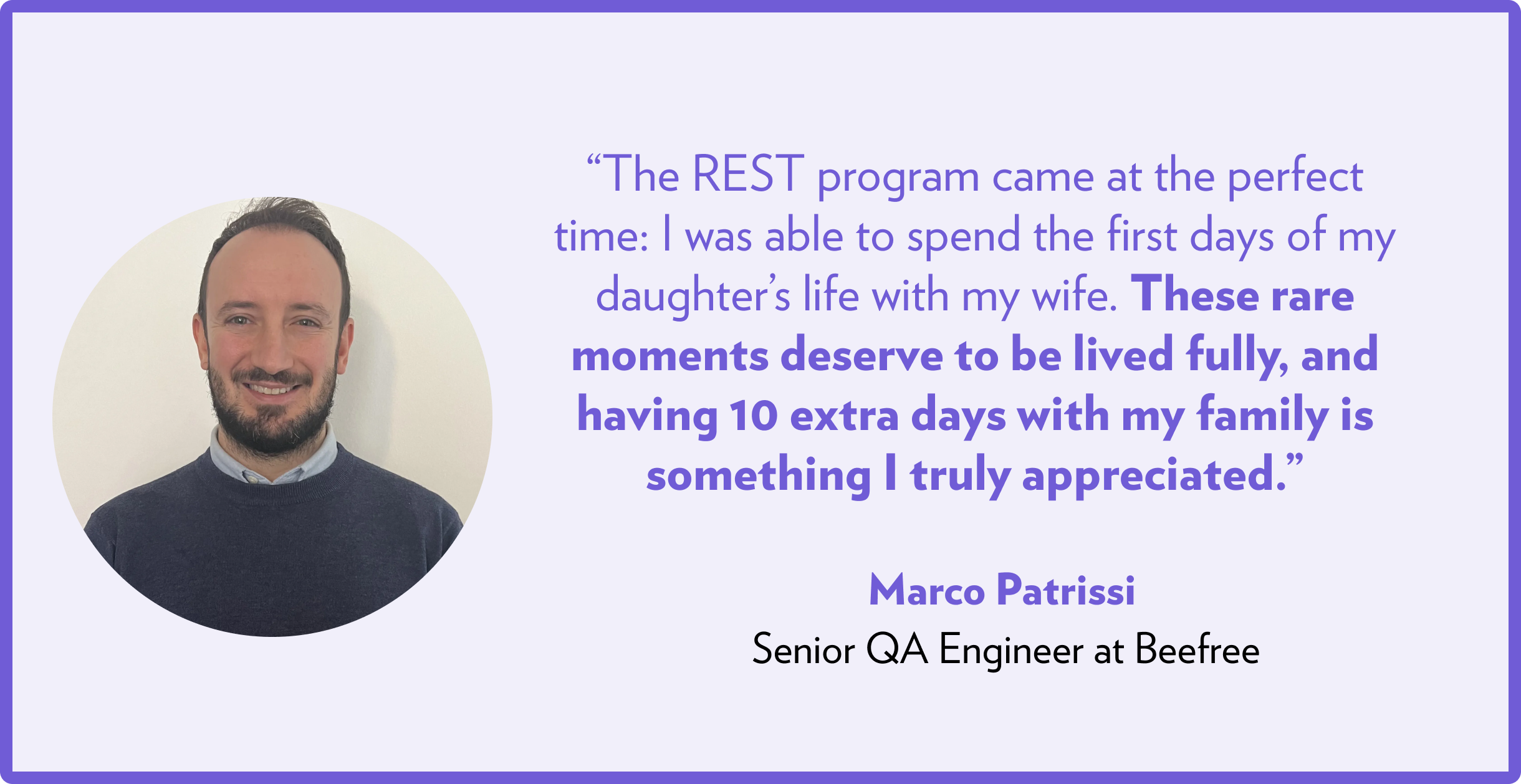 At Beefree, we’ve built a new kind of time-off program. We call it REST. But before I explain what it is, let me tell you why we needed it.